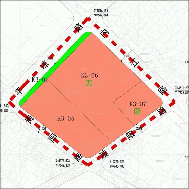 K3-06地块:用地面积22761㎡, 容积率1.2,建筑限高24m。不仅面积变大,性质也从小学调整为九年一贯制学校用地(Rs5)。