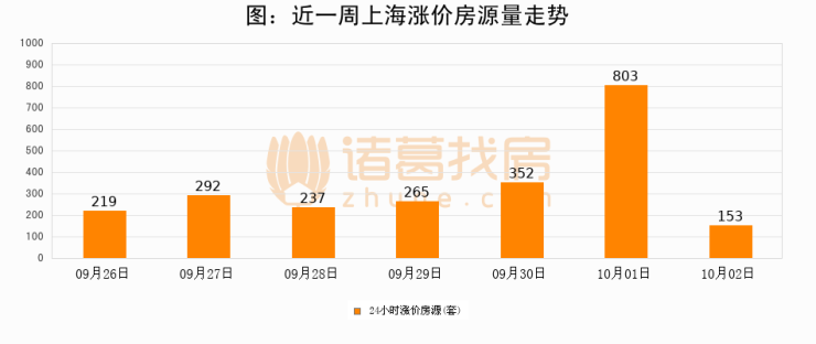 根据诸葛找房数据显示,上海24小时涨价房源量为153套,较10月01日减少650套,环比下降80.9%。与此同时,涨价房源占比小幅回落,对于购房者来说是一个入市窗口期,购房者可抓住时机入市。