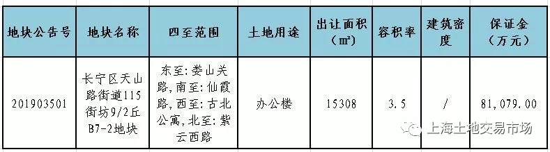 2019年3月21日,上海市土地交易市场发布挂牌出让长宁区天山路街道115街坊9/2丘B7-2地块国有建设用地使用权的公告。