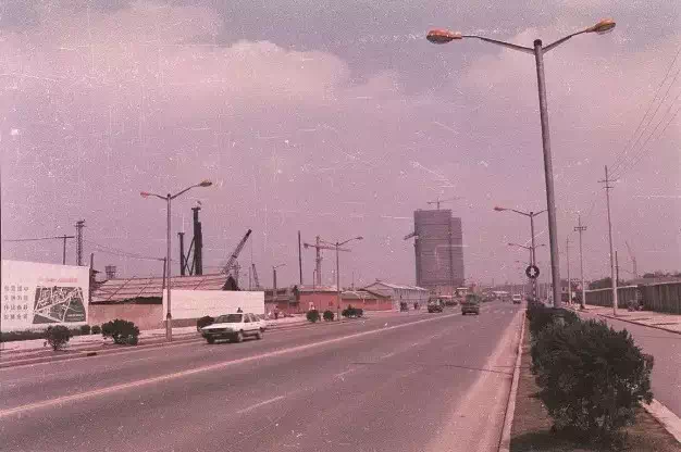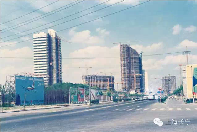 建设中的虹桥开发区延安西路两侧的宾馆群