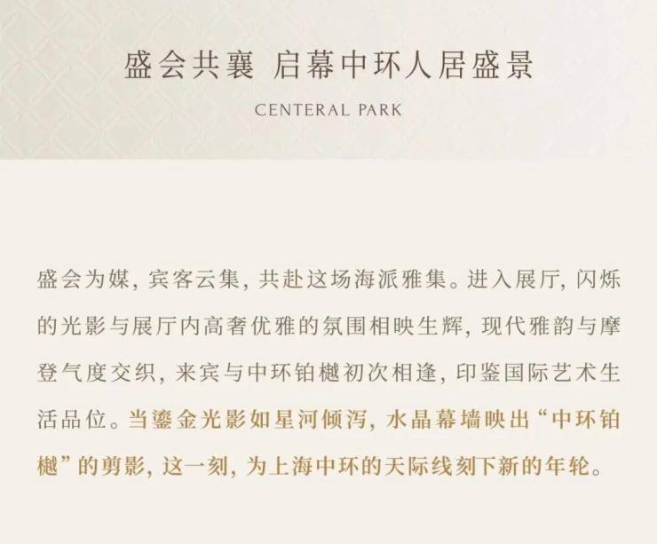 开发商:上海东润鸣熙置业有限公司;整案推广名:中环铂樾;项目备案名:鸣映华璟名邸。本资料为邀约邀请,项目具体信息以政府最终审批文件为准;项目周边环境、交通及其他公共设施效果示意以实际政府部门标准文件为准。相关宣传内容不排除因政府规划、规定及分期规划、未能控制等原因发生变化,在不违反法律法规、合同约定的前提下,本公司有权对该宣传资料细节进行调整或更新,不再另行通知,建议定期查阅最新信息。制作日期:2025年4月。