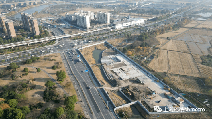 车站总建筑面积28471.08平方米,车站主体及接收井采用明挖顺作法施工,过嘉松南路及嘉松景观河段拟采用顶管/盾构一体机法施工,站后折返线隧道总长260.4米。车站主体基坑最大深度为22.02米,车站正线上下行线均为盾构接收井,出入场线均为盾构始发井。