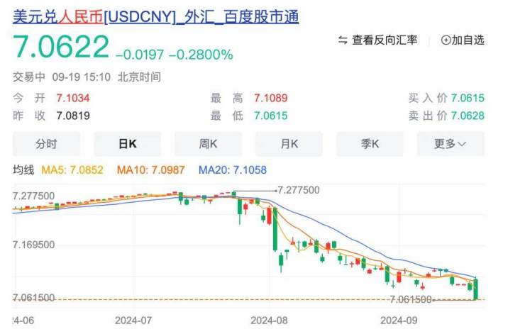 以人民币为例,美国自从2022年3月开启加息之后,人民币一直处于贬值压力。8月以后,美联储降息的声浪一层高过一层,人民币贬值压力也得到释放。