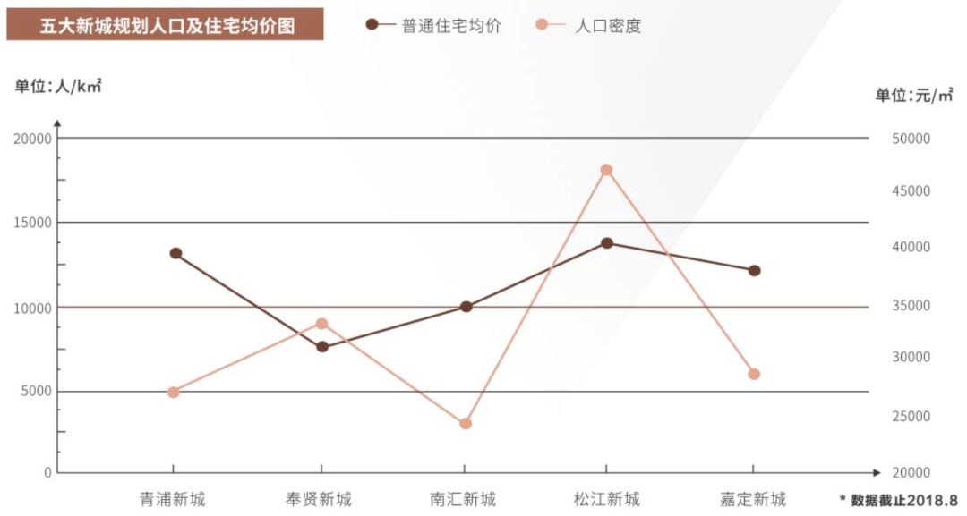 奉贤新城规划人口密度,在五大新城中排列第二。但其均价目前在五大新城中处于“价格洼地”,未来房价上升潜力可期。