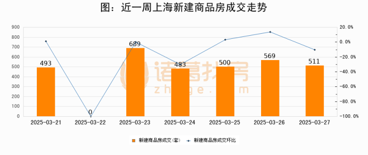 【上海成交日报】03月27日新房成交511套、二手房788套;涨价房源424套