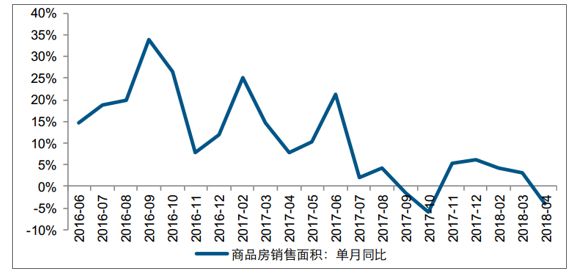 截至 2018 年 4 月,商品房销售面积单月同比增速进入负增长区间