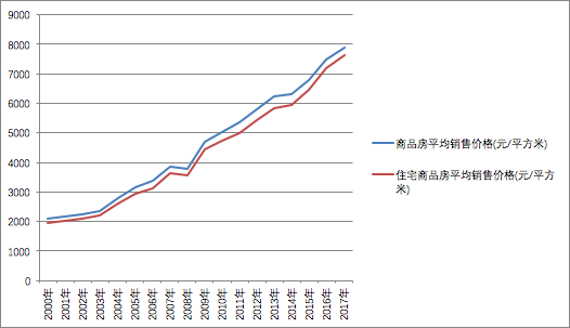 2000-2017年全国平均房价