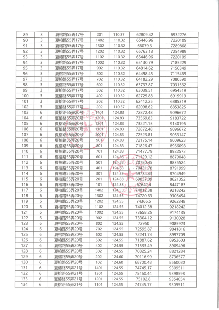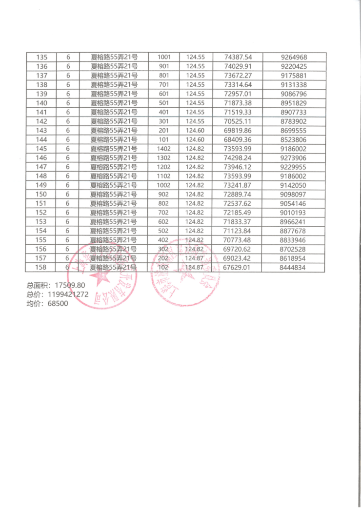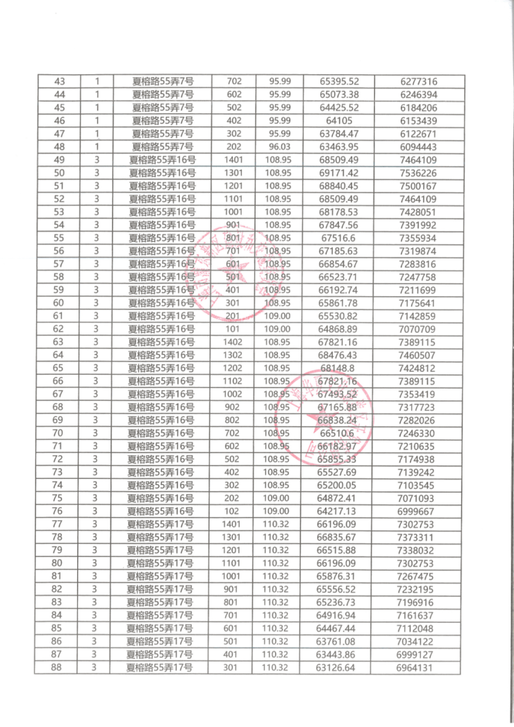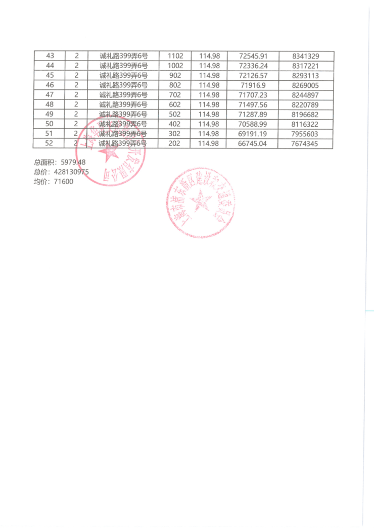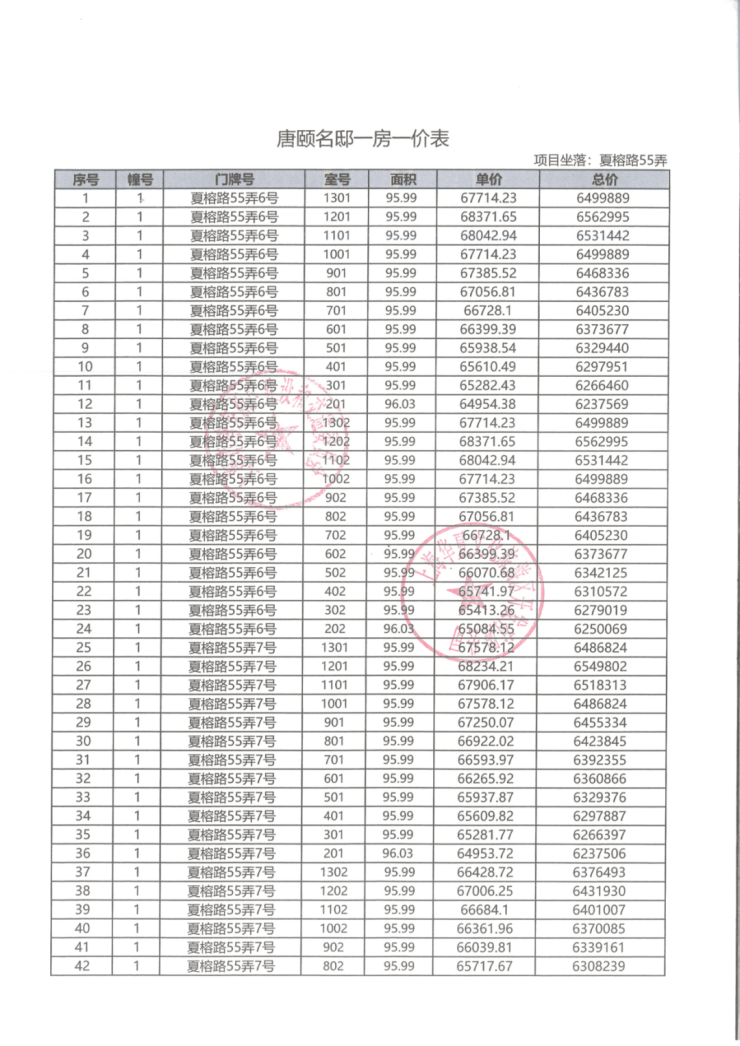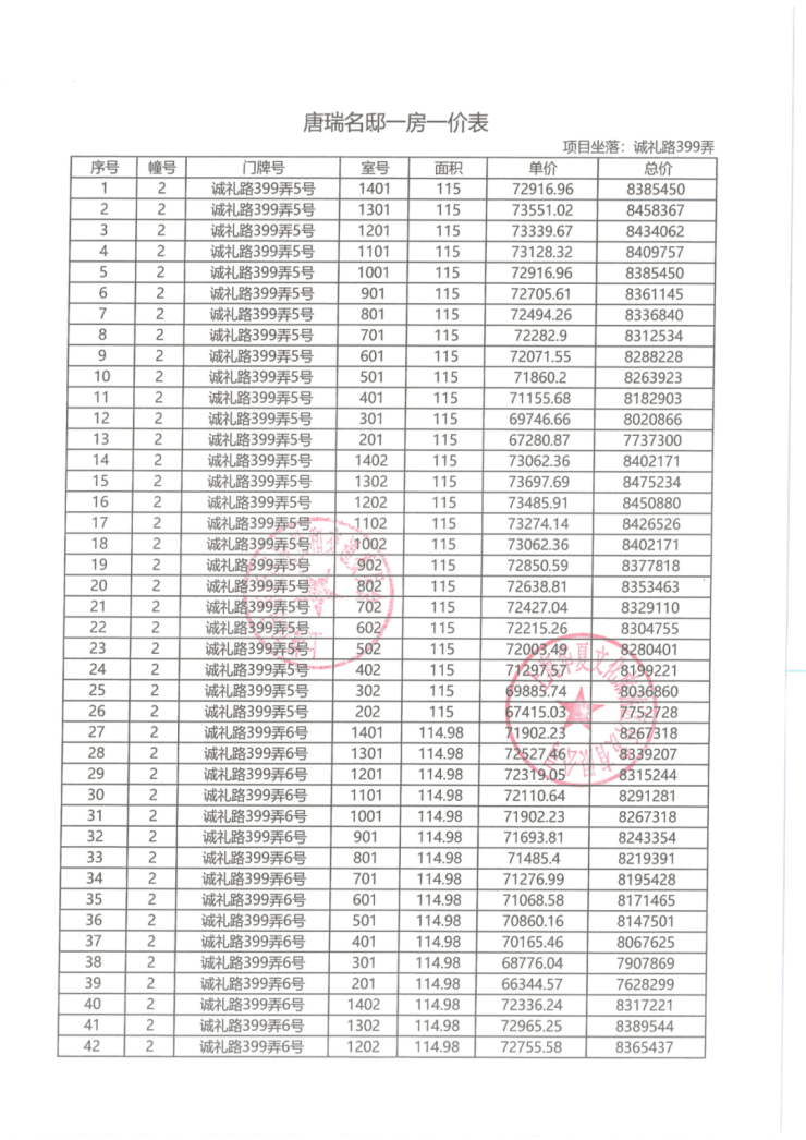 一房一价表: