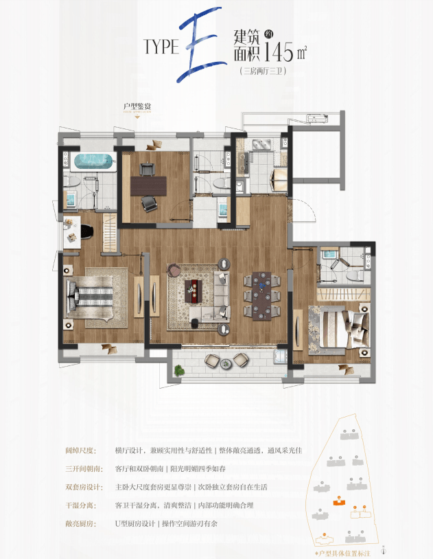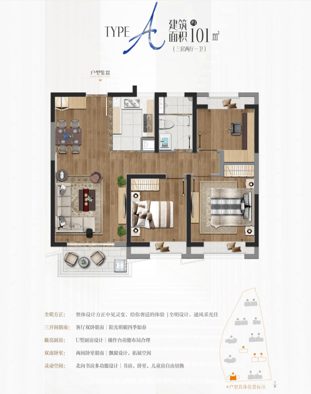 项目待推房源的户型与前两期基本一致,具体各个户型套数分布如下: