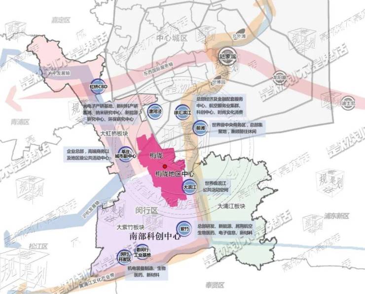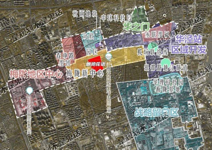 其中 梅陇地区中心,是以文化娱乐、商业商务、生态休闲和居住功能为一体的综合片区,成为闵行中部及南部区域城市功能的重要补充和完善,形成服务梅陇、颛桥地区的生活服务中心。