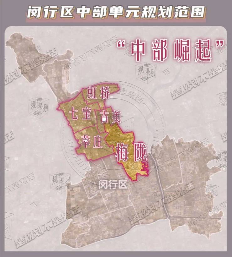 在总体规划层面,梅陇板块属于闵行中部单元,正好今年年初《闵行区中部单元规划》刚刚批复。