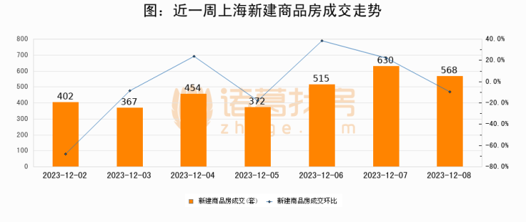 【上海成交日报】12月08日新房成交568套;涨价房源272套