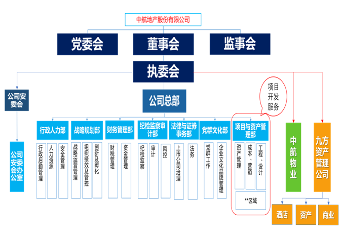 公开资料显示,中航地产成立于1985年,1994年在深交所上市,是隶属于中国航空工业集团公司的央企上市公司,业务范围涵盖地产开发、物业经营与管理、酒店经营与管理等。赢商网查阅中航地产官网显示,中航地产组织架构下设中航物业与九方资产管理公司两家公司。