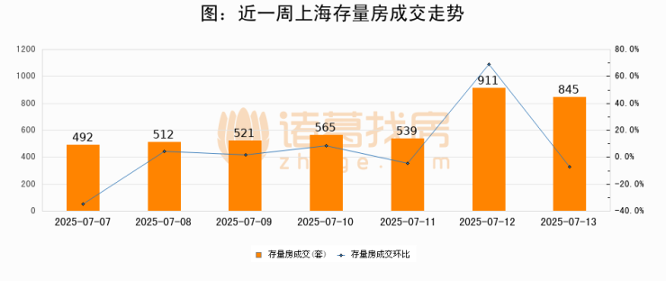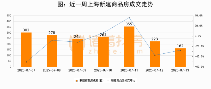 【上海成交日报】07月13日新房成交162套、二手房845套;涨价房源91套