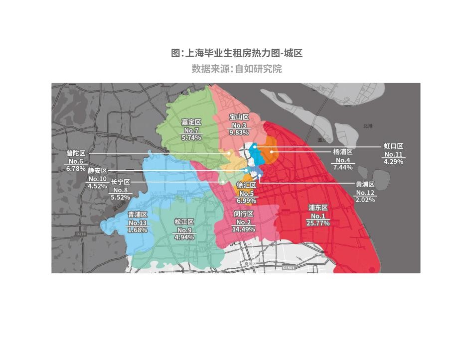 报告数据显示,汇集了陆家嘴和自贸区的浦东区,以及拥有90多家500强企业聚集的闵行区,成功登顶毕业上海毕业生租住热门城区Top榜单。报告数据显示,在这两个区域租住的毕业生占到上海租房毕业生的4成。