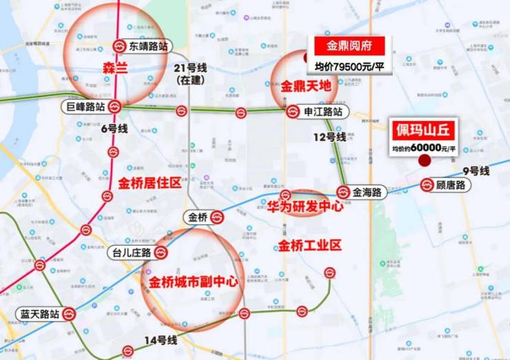 不仅如此,9号线1站即达金海路站TOD浦发上城项目,换乘12号线再1站即达约218万方金鼎天地综合体。