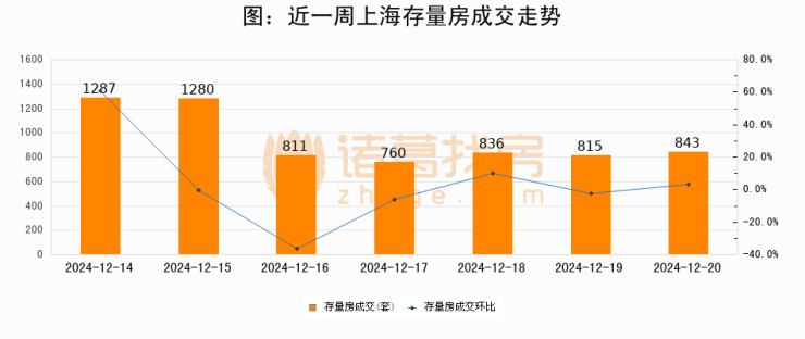 【上海成交日报】12月20日二手房843套;涨价房源180套