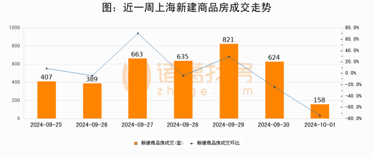 【上海成交日报】10月01日新房成交158套、二手房220套;涨价房源803套