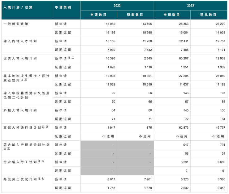 香港劳工及福利局官方数据显示,2023年各项人才入境计划共收到超过22万宗申请,当中逾14万宗获批。在获批的个案中,已有约9万名人才抵港,超出了2022年施政报告订立的每年至少输入3.5万名人才的目标,招揽人才成果显著。