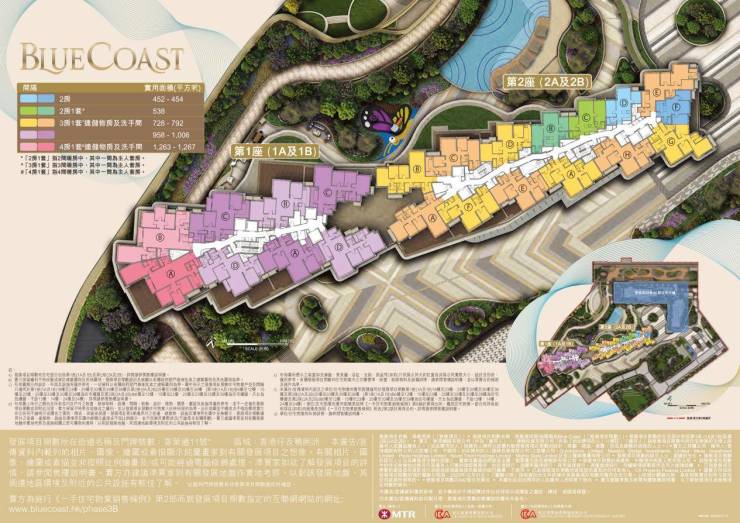 「Blue Coast」共提供1200户住宅,第一期项目642户分层住宅,以2至4房大宅设计,实用面积由452至1,267平方呎,间隔多元化,部分两房及所有三、四房均设有主人套房,大部分房型拥有角窗设计,采亮度较高。而且,所有单位均配备德国顶级厨柜及厨具品牌Leicht及Gaggenau,美观与功能兼备,细节之处彰显国际生活质感,满足优才人士对于居住品质的要求。