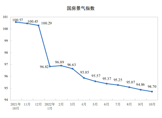 10月份,房地产开发景气指数(简称“国房景气指数”)为94.70。