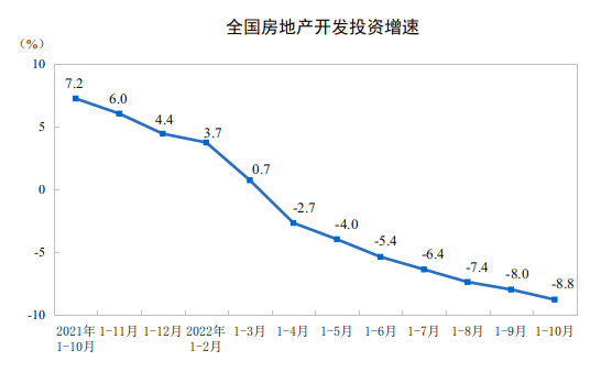 国家统计局:1—10月全国房地产开发投资同比下降8.8%