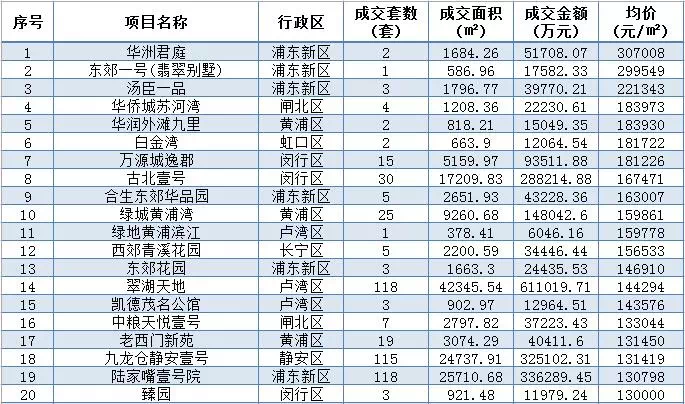上海最贵豪宅Top20,最贵的竟然不是汤臣一品?