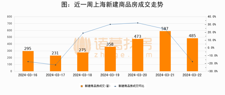 【上海成交日报】03月22日新房成交485套;涨价房源272套
