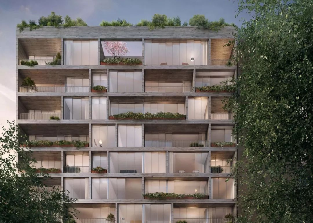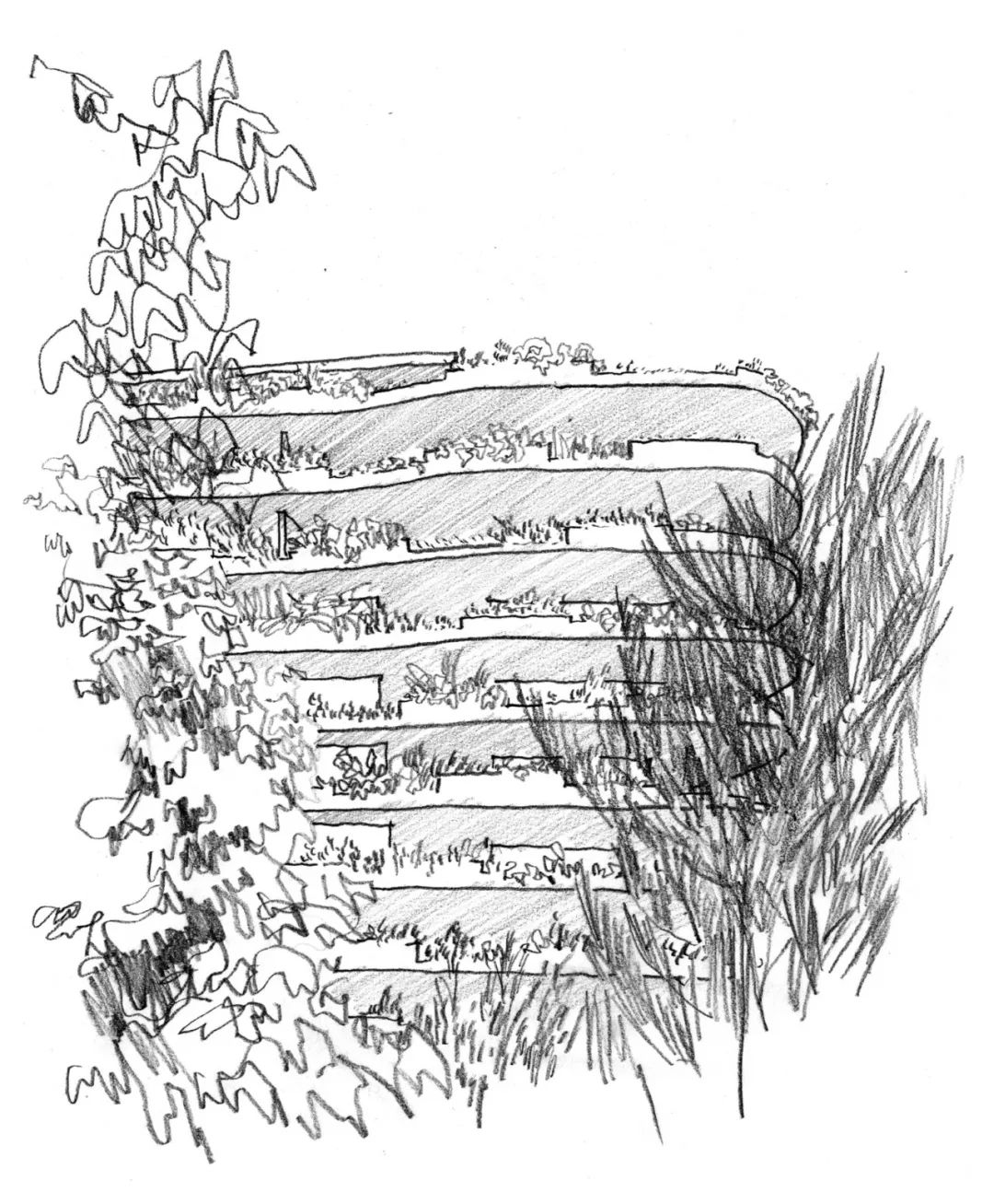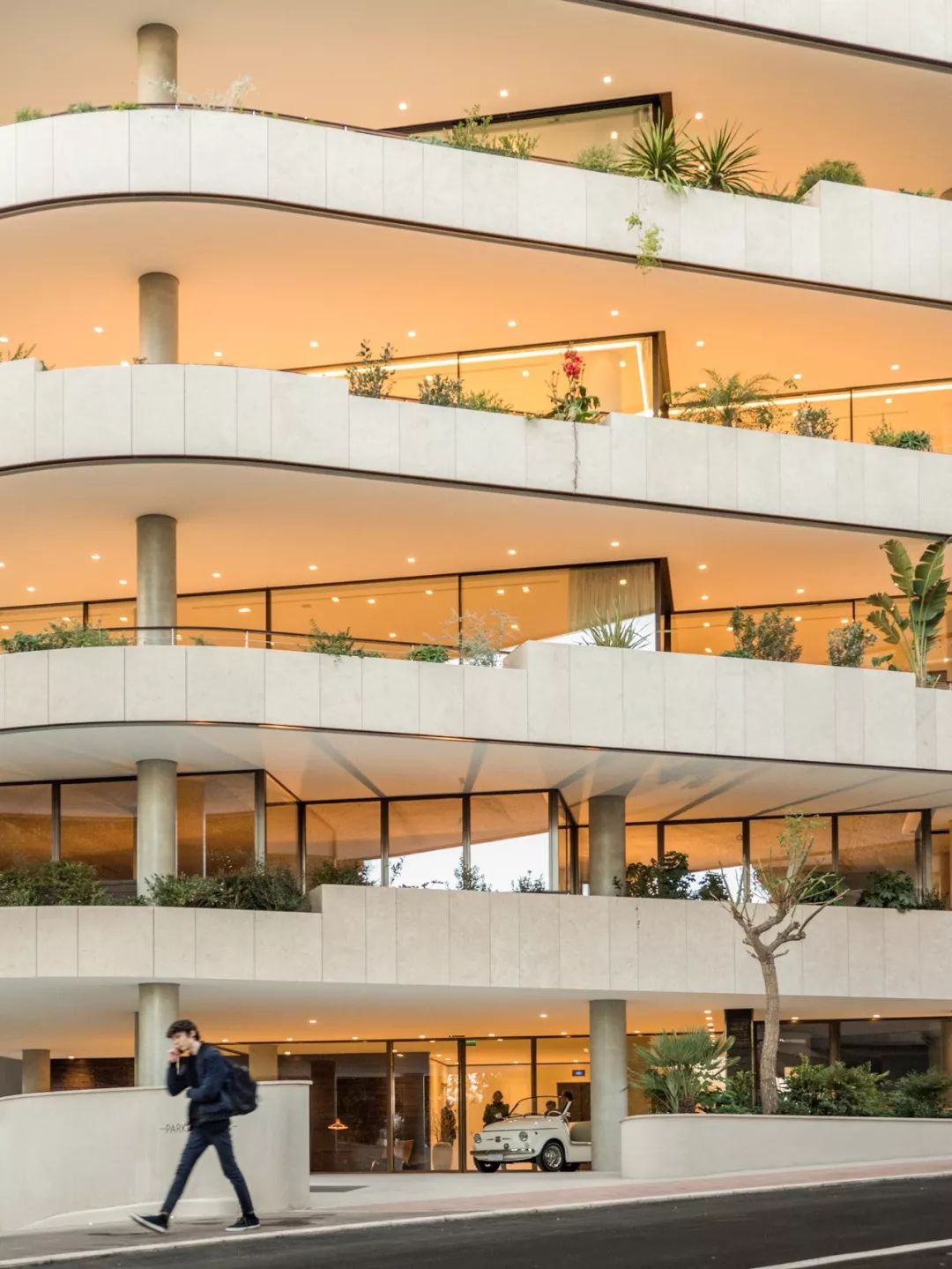 这些阳台花园外部有着优美的线条,并且以石头为主要材料,将整个建筑物精心嵌入其城市环境中。