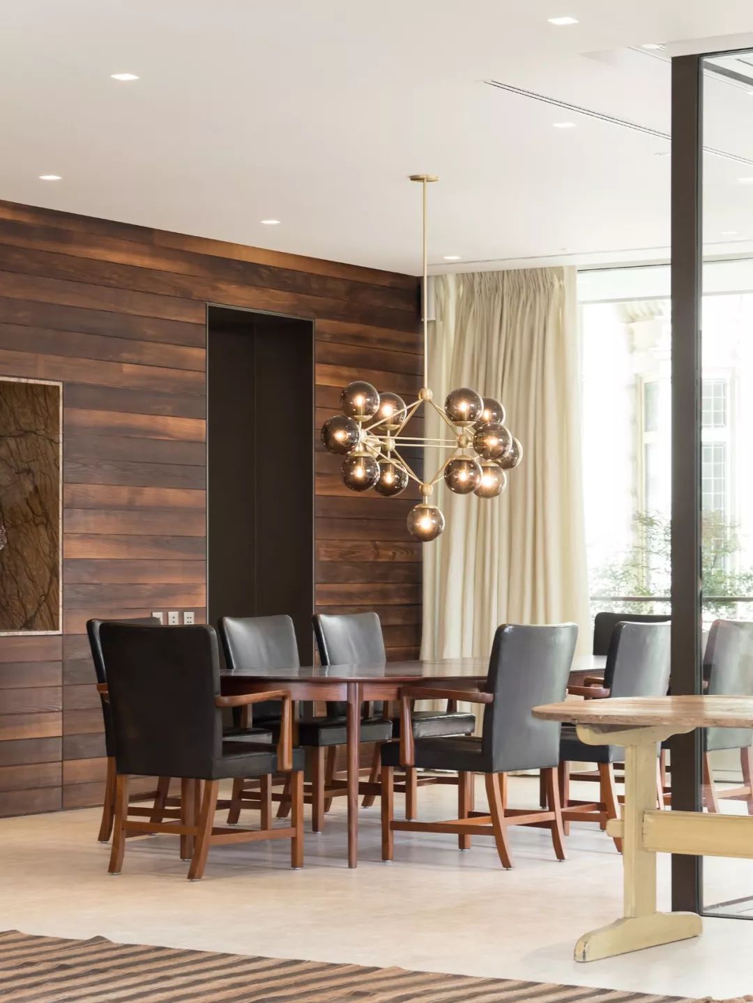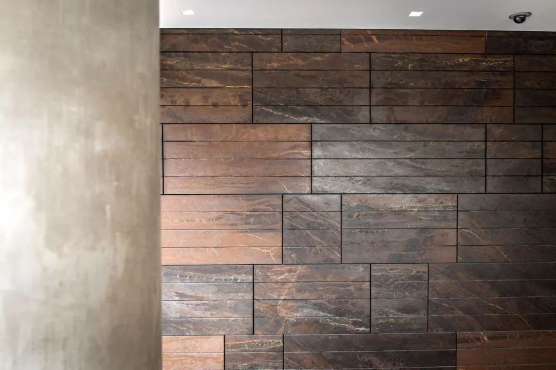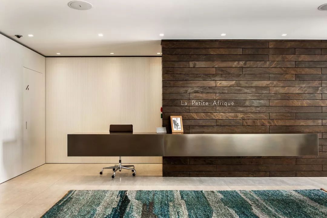 室内设计也同样优雅,大堂的部分做到了小而美的设计,木材、石料等组合成有质感的铺贴设计,并且通过形状与色差的搭配,将室内空间打造为舒适的地方。