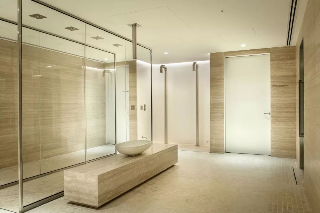 在建筑的底层有着包括健身房、运动场、桑拿浴室、游泳池和更衣室的配备设施。