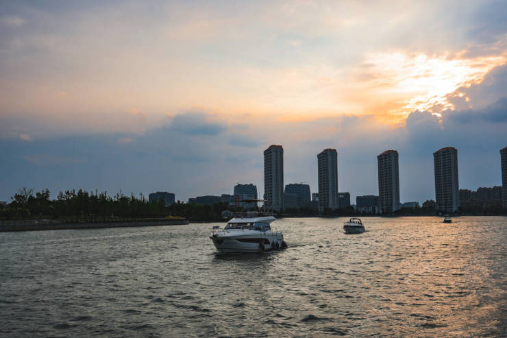此外,结合“游艇入户”的湖居特色,嘉宾们更是登上游艇,实地感受上海唯一拥有私人码头的别墅生活场景。项目不仅坐拥紫竹国家高新区的产业资源、水利风景区的生态优势,亦毗邻高校科研与顶尖住宅圈层,构建起“产业高地+生态高地+教育高地+人居高地”的全维度融合,为高净值人群提供了真正的未来人居阵。
