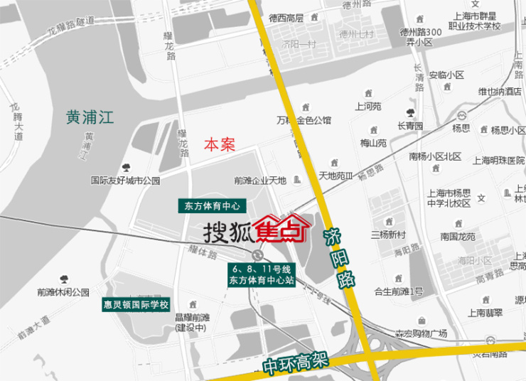 “前滩10-01地块项目”东至文腾路、南至泳耀路、西至文乐路、北至林耀路,位于东方体育中心北侧一路之隔,步行至6、8、11号线东方体育中心站约900米,到济阳路约400米,直线距离黄浦江约600米,地理位置优越。