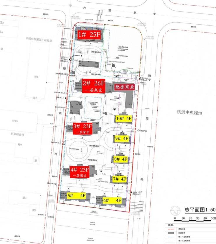 中环桃浦项目拟建23-26层高层和4层低密别墅,2026年投售,楼板价44042元/㎡。