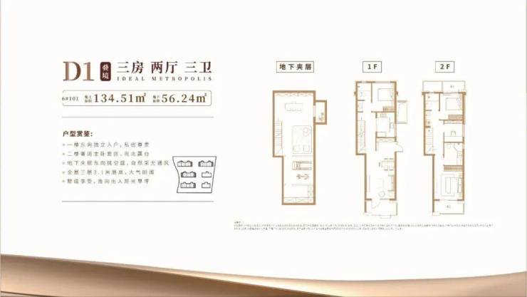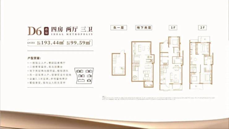 除此之外,洋房一层还有少量复式叠加产品,面积段在约134-223㎡,附赠约56-113㎡的地下空间,堪称一步到位的改善产品。