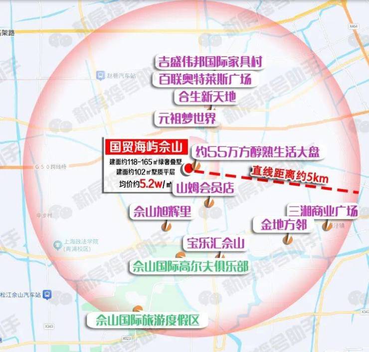 另外「国贸海屿佘山」直线距离山姆会员店仅约700米;3公里范围内,则涵盖多个国际化大型综合购物广场,如奥特莱斯、合生新天地、元祖梦世界等;5公里范围内,佘山国际高尔夫俱乐部、佘山国际旅游度假区也能满足业主日常休闲所需~