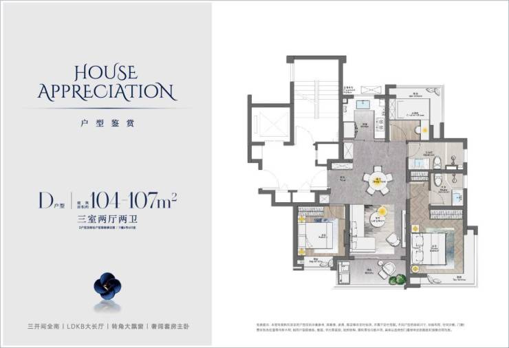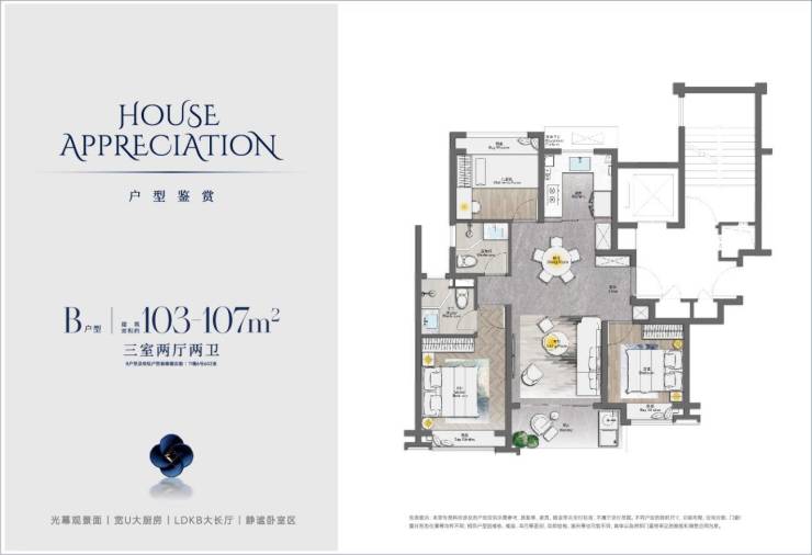 本次首发还隆重推出建面约103㎡、建面约105㎡两大明星小户型,小空间“大享受”:不仅拥有独立入户前厅,还是3开间朝南格局,更享受LDKB一体化大连厅,南北通透敞亮,厨、餐、客、阳台一线连通,空间感十足。主、次卧均为全飘窗设计,配置270°环视视野窗户,生活舒适度不言而喻。