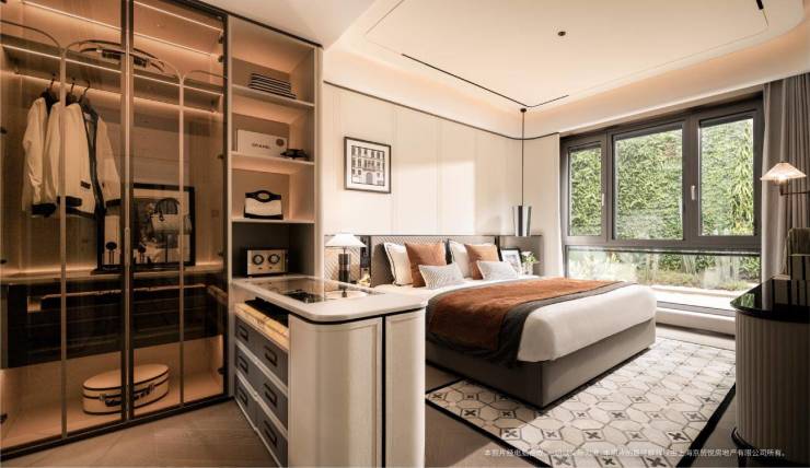 套卧,一方同频华尔道夫的“二人世界”,南北双向采光通风,奢享卧室、衣帽间、饰品展示柜、卫生间等四大功能区,同时,更多高定细节在样板间已展露无遗: