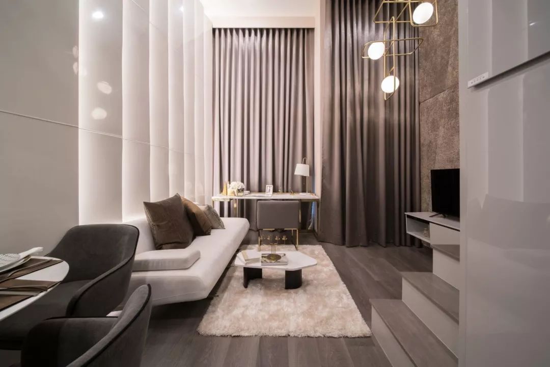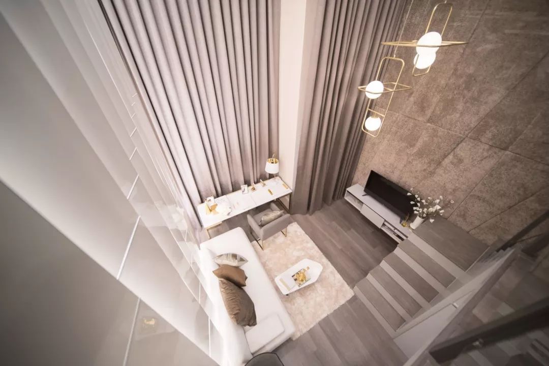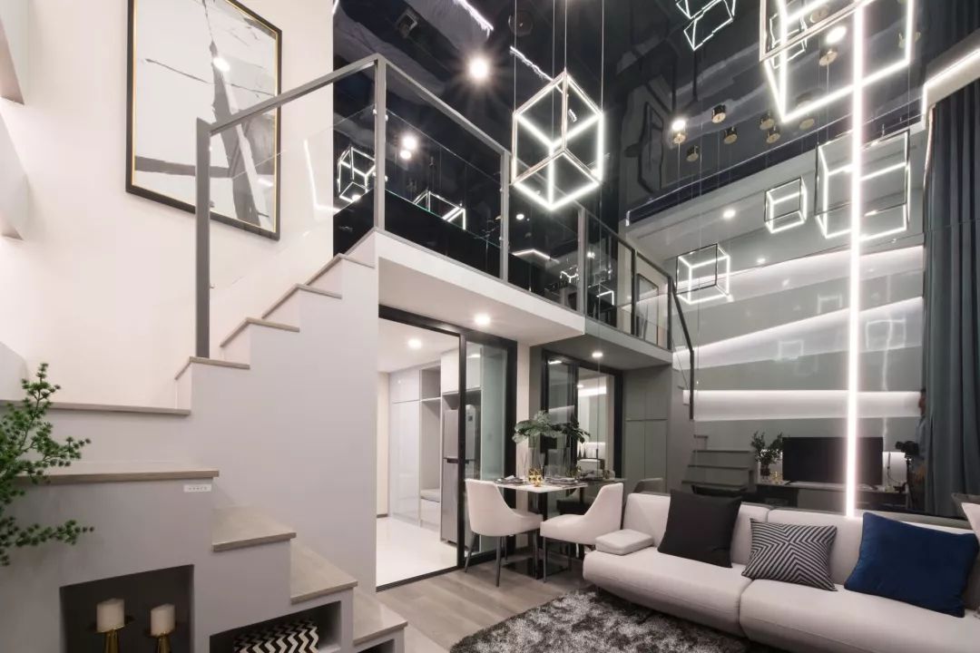 Knightsbridge Space Rama 9是区域内部罕见的复式公寓,单层挑高高达4.2米。这也是Origin的特色,他们家的房子都很注重空间感,极力拓宽小户型的使用面积,项目共有两种户型。