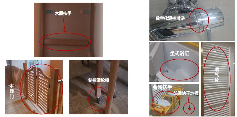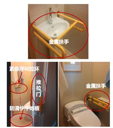 公共区域主要为防摔倒设计;沐浴室注重温控、防寒、防摔倒设计