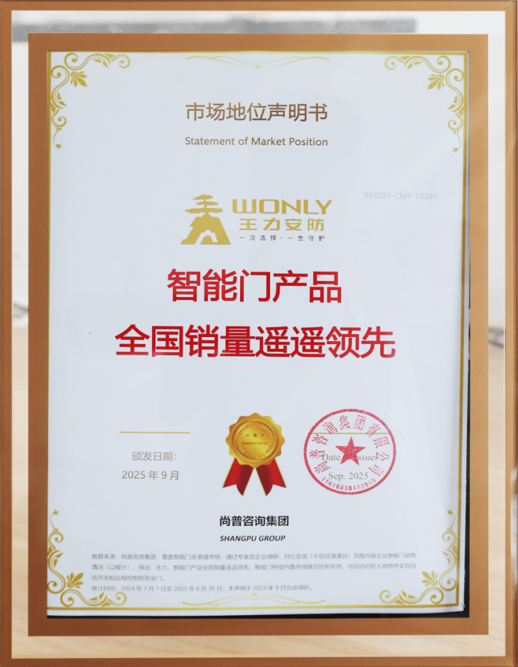 科技的价值,在于点亮生活;创新的脚步,源于用户的需求,最终归于万千家庭的安心与笑容。此前,王力机器人防盗门技术突破的价值已在市场中得到验证——发布会上,尚普咨询集团创始合伙人邓新宇为王力颁发智能门全国销量遥遥领先证书。这份荣誉,不仅是王力技术实力的体现,更是用户口碑的见证。