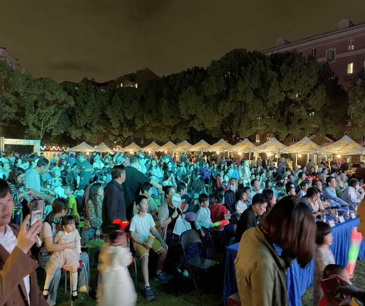 小区业主、街道住户、物业员工纷纷登台献艺,歌舞表演、相声小品等节目高潮迭起。台上演员载歌载舞,台下观众热情欢呼,温柔的月色下,上千名既熟悉又陌生的社区居民欢聚一堂,共叙邻里情。