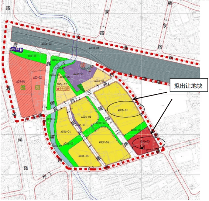 出让资料显示,普陀区W060401单元A03D-01、A03D-03地块用地性质为商住,由两幅子地块组成,其中: