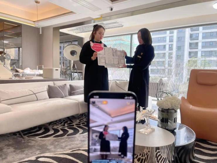 “军团化”作战,也让流程更清晰、服务更精细。除了有固定搭档掌镜外,还有其他同事作为后台管理员,时时与观众互动,分工明确,效率更高。在这方面,无锡山水拾涧项目的营销策划朱品宜也深有体会。