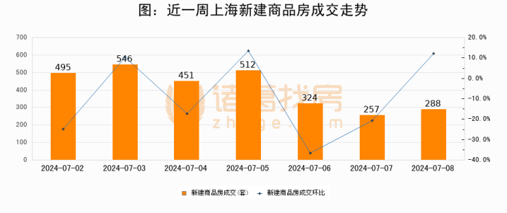 【上海成交日报】07月08日新房成交288套;涨价房源125套