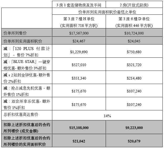 「120 PLUS付款计划」总折扣优惠高达售价14%包括︰