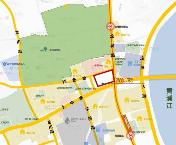 地块距离上海植物园仅约300米,东侧距离黄浦江岸线仅约500米,是中心城区罕见的兼具公园与滨江资源的低密地块。同时,地块紧邻上中路隧道,距离在建的23号线上海植物园站约600米,未来步行可达。