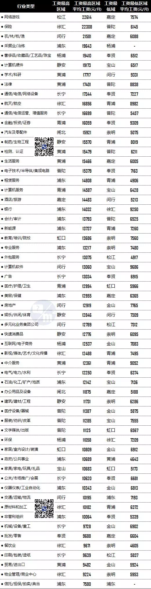 相同的一个行业,在上海不同区域的工资情况大相径庭。例如同样是网络游戏行业,松江区给出的平均工资高达22614元/月,而嘉定区仅为7574元/月。所以入对行重要,选对工作区域也十分重要。