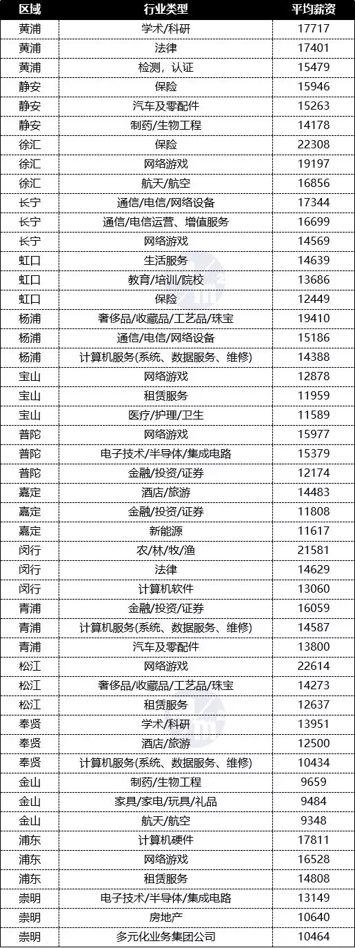 下面小编整理了不同行业在上海工资较高的区域,找工作的小伙伴可对号入座。