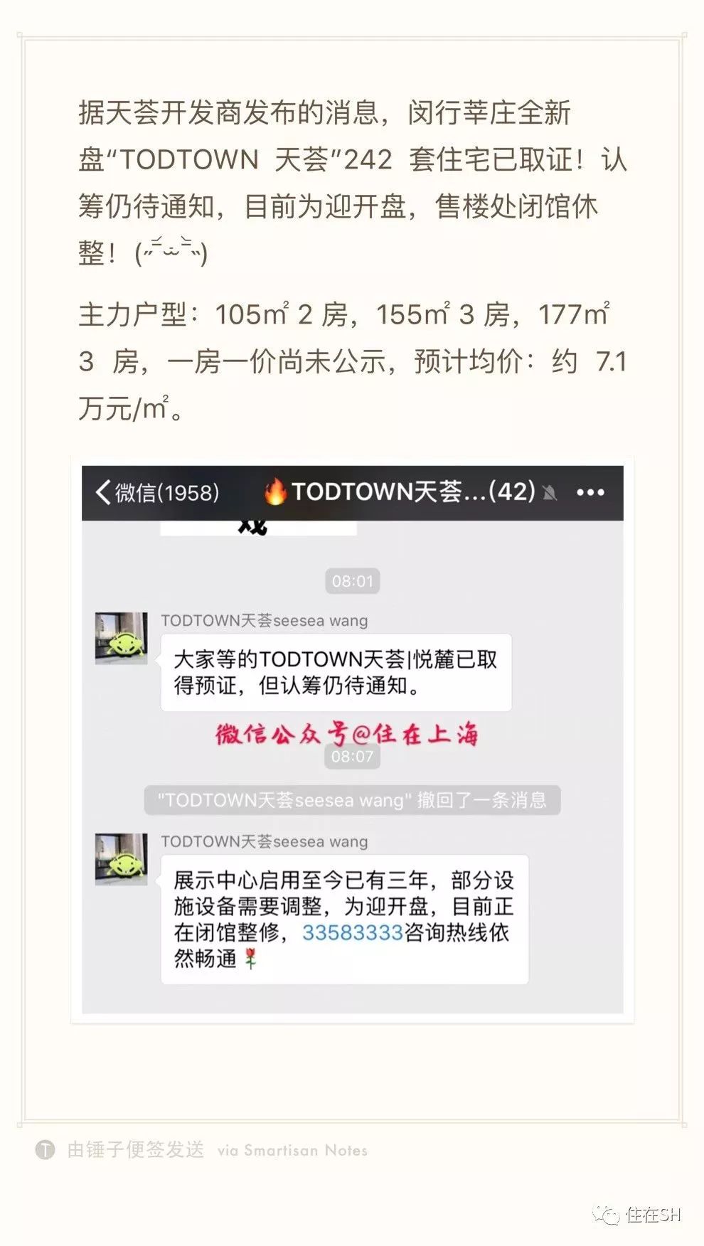 据较新消息,闵行莘庄地体上盖项目——TODTOWN天荟悦麓正式取证!